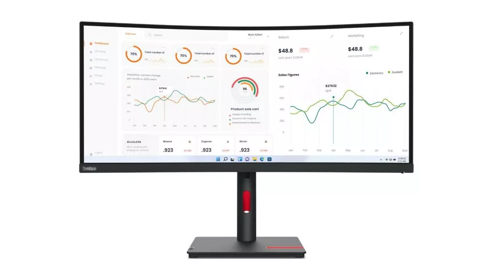 כאשר רוצים מסך גדול, ThinkVision T32p-30 החדש מציע צג עצום של 31.5 אינץ' ברזולוציית 4K UHD עם פאנל IPS שמבטיח צפייה מיטבית מכל זווית. הוא מציע איכות תמונה חדה להפליא עם תמיכה של 99% במרחב הצבעים sRGB, יחס ניגודיות גבוה ובהירות בעוצמה של 350 ניט. המשתמשים יזכו לבהירות הדרושה להם כדי להתמודד עם עבודה עמוסת נתונים, מה שהופך צפייה בגיליונות אלקטרוניים גדולים, לוחות עמוסי תמונות ועריכת תוכן לנוחה וקלה. עם עיצוב ללא מסגרת משלושה צדדים, מסך רחב ושטוח זה מקל על מעבר בין מסמכים מרובים ומציע חווית צפייה חלקה ויעילה יותר בסביבת עבודה מרובת מסכים. אלו שמעדיפים לראות תוכן רב יותר בכל מבט יכולים לבחור ב-ThinkVision T34w-30: מסך 34 אינץ' קעור ברזולוציית WQHD עם יחס היבט של 21:9 ורדיוס קיעור של  1500Rהמספק חוויה פנורמית עם אורך מיקוד עקבי בכל שטחי המסך.