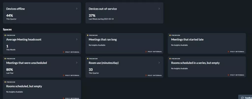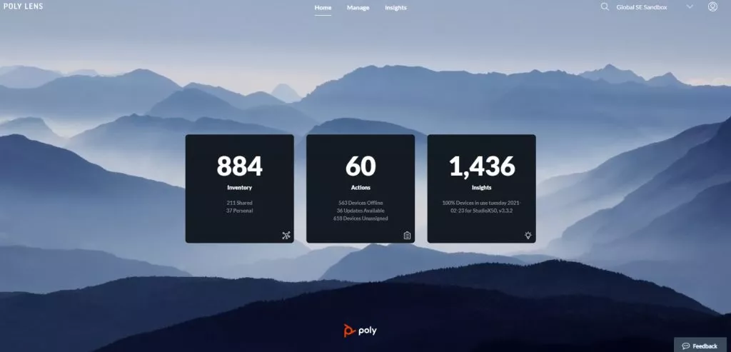 "ה Poly Lens פועל בשתי שכבות; השכבה הראשונה הינה שכבת הבסיס והיא מתמקדת בניהול הפתרונות והמערכות המותקנות בחדרי הישיבות. השכבה השנייה נועדה לתת תובנות על אותם חדרים.