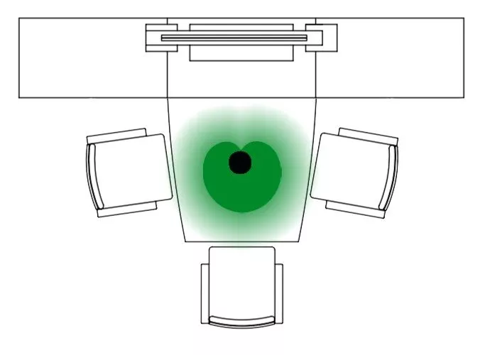 Omnidirectional – מצב שבו המיקרופון ב270 מעלות, בתצורת V הפוכה, מה שמאפשר לקלוט 4-10 דוברים מסביב לשולחן בחדר ישיבות."