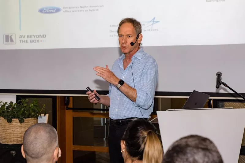 אביב רון סמנכ"ל הפיתוח העסקי בקרמר דיבר על מגמות בעולם בעידן הפוסט-קורונה והשפעת השנה וחצי האחרונות והמחיש באמצעות דוגמאות מפרויקטים שונים בעולם כגון אוניברסיטאות באיטליה ובתי משפט בגרמניה.