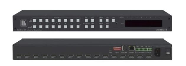 VS-88UHD של קרמר (Kramer) היא מטריצת מיתוג לתצוגות HDMI בגודל 1U שמשתלבת בקלות ברשת הארגונית כפתרון AV חכם ומנוהל. מדובר במטריצה בגודל 8×8 שבאמצעות כניסות וחיבורי HDMI יכולה לקבל עד 8 אותות משולבים של קול ותמונה, ממקורות שונים ומגוונים, ולהפיץ אותם לעד שמונה התקני תצוגה שונים. באמצעות ניתובים קלים לתפעול ניתן להחליט אילו מקורות יוצגו באלו תצוגות עם אפשרות לשכפול תצוגות, מיתוגים שונים ושילוב של שניהם. בנוסף, בשילוב תמיכה ב-ARC מציעה VS-88UHD יכולת הזרמת מקור האודיו גם מהמסך ולשלב עם מקורות אחרים במערכת.