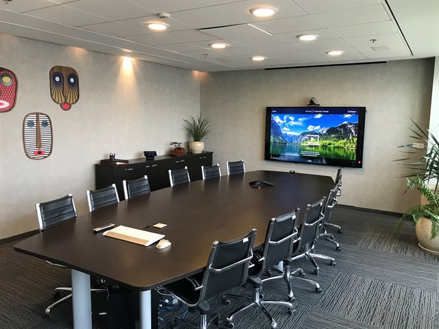 החדר כולל את כל מה שנדרש על מנת לקיים שיחת וידאו קונפרנס איכותית ואפקטיבית; מסך תצוגה מקצועי בגודל 85", מערכת וידאו קונפרנס מקצועית של Cisco בעלת מצלמה זום X 12 , מערכת הגברה עם רמקולים שקועים בתקרה, מיקרופונים רגישים ואיכותיים וכמובן את מגוון החיבורים המאפשרים הצגת תוכן למשתתפי הוועידה.
