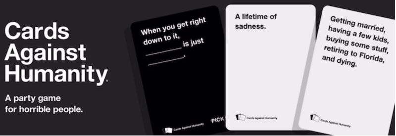 משחק פשוט – אבל בהחלט משעשע. המהות של המשחק הידוע כמשחק מסיבות ל"אנשים נוראיים", היא ששחקן אחד שואל שאלה מתוך כרטיס שחור וכל השאר בוחרים את התשובה מכרטיס לבן, מהאפשרויות שבידם, שלדעתם הוא הכי מצחיק (או בדרך כלל, הכי לא ׳פוליטיקלי קורקט׳). המשחק מהנה ביותר עם 6 עד 8 שחקנים ולכן הוא המתאים ביותר למפגשי שבירת קרח בעבודה. אף שחלק מחפיסות הקלפים עשויות להיות קצת שערורייתיות עם תוכן למבוגרים בלבד – ואולי כדאי לשמור אותן לפגישה של משקה וירטואלי בערב שישי עם החברים – אפשר לבחור חבילות קצת פחות קיצוניות שנועדו למשפחות.