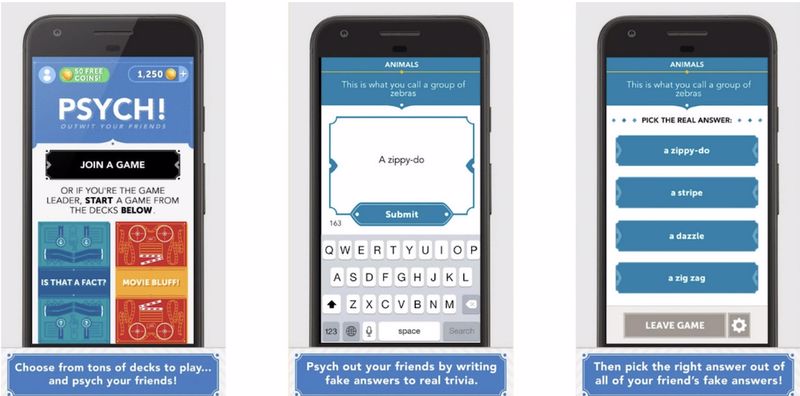כיף אמיתי לשחק את המשחק הזה עם קבוצת חברים. כל שחקן ממציא תשובות מזויפות לשאלות טריוויה אמיתיות ושאר השחקנים צריכים למצוא את התשובה האמיתית. זהו אכן משחק אינטלקטואלי לבדיקת הידע שלכם בנוגע לשאלות ידע כללי.