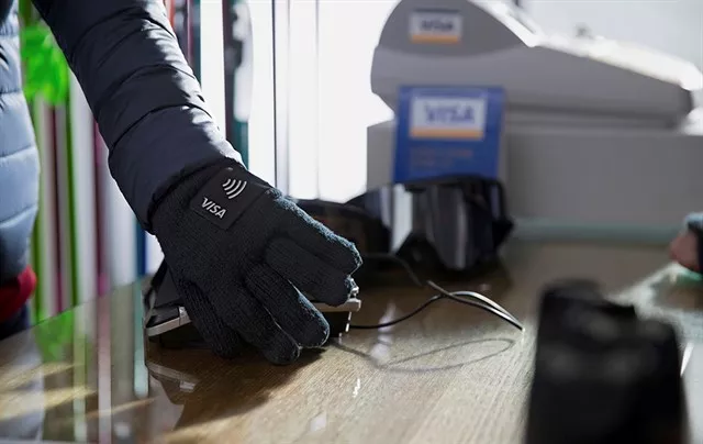 הכפפות של חברת האשראי ויזה נראות בדיוק כמו שנראית כל כפפה אחרת – כפפות צמר שחורות, שעליהן מתנוסס לוגו החברה. אלא שהכפפות מצוידות בטכנולוגיית מבוססת קרבה ה NFC(Near Field Communication), ומאפשרות נגישות מלאה של הצופים לחשבון אשראי ייעודי ללא צורך לשאת כרטיס אשראי, או להיכנס לאפליקציה בטלפון הנייד לצורך ביצוע תשלום מרחוק.