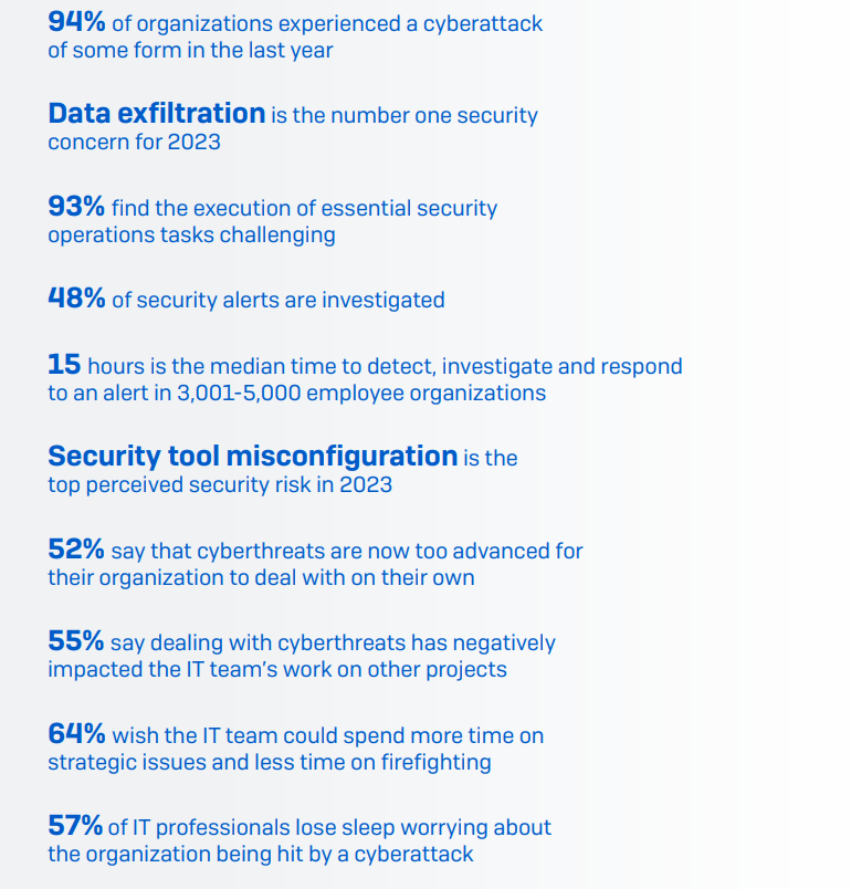 סקירת The State of Cybersecurity 2023: The Business Impact of Adversaries on Defenders מבוססת על מחקר שוק שנערך בחודשים ינואר ופברואר 2023 על ידי מכון מחקר בלתי־תלוי בהשתתפות 3,000 מנהלי IT/אבטחת סייבר מ־14 ארצות.
