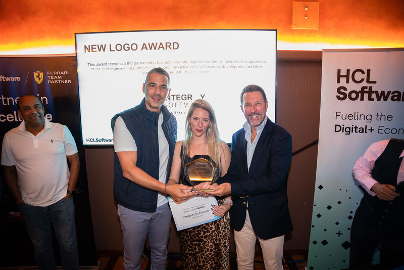 הפרס הוענק לנציגי אינטגריטי: אורן קרוג, מנכ"ל החברה, ואנה יפרח VP Sales החברה, ע״י עמית גופרה Chief Partner Officer וג'ון קוסינסקי – VP HO Europe מחברת HCL.