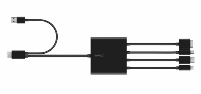 הפתרון השלישי הוא מתאם מרובה כניסות לשימוש לצורך הזרמת תכני AV מכל התקן למקרנים, מערכות ניהול וכדומה. מצד אחד מדובר בחיבור HDMI עם מחבר USB מלווה, לאספקת כוח כאשר מתחברים להתקן התצוגה, ומצד שני ניתן לעשות שימוש בראשי חיבור שונים שמתאימים לחיבורי miniDisplyPort, ל-USB-C, ל-HDMI ואפילו ל-VGA הוותיק. ההתקן מציע אורך עבודה מרבי של כ-2.5 מטרים והוא כאמור מאפשר לכל ממשתף להתחבר בקלות למערכת, ללא צורך בפעולה נוספת מעבר לחיבור עצמו. ההתקן יעלה 149.99 דולרים והוא יתמוך בהזרמת וידאו באיכות מרבית של 4K.