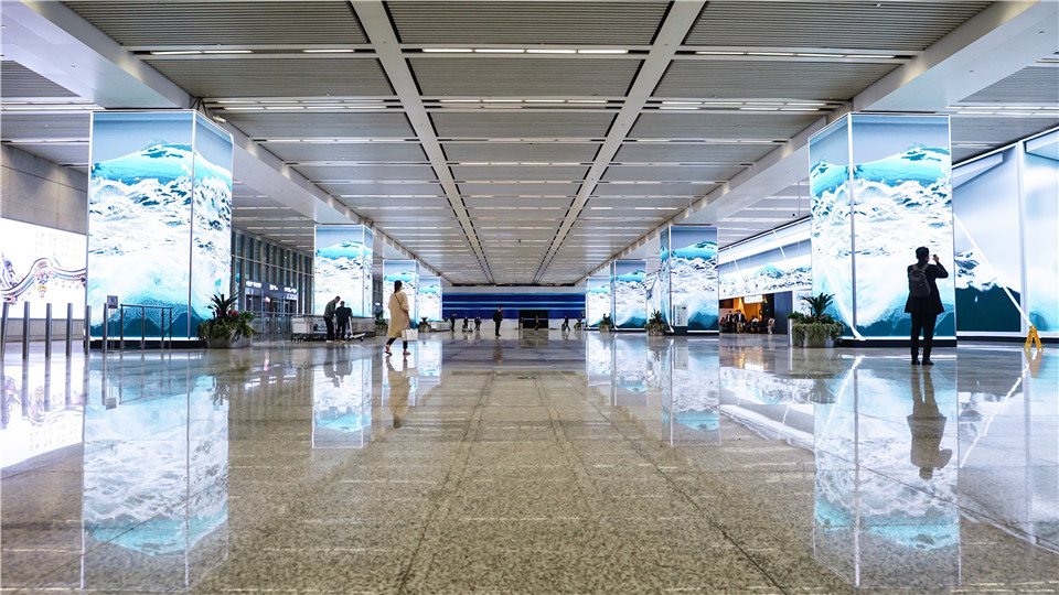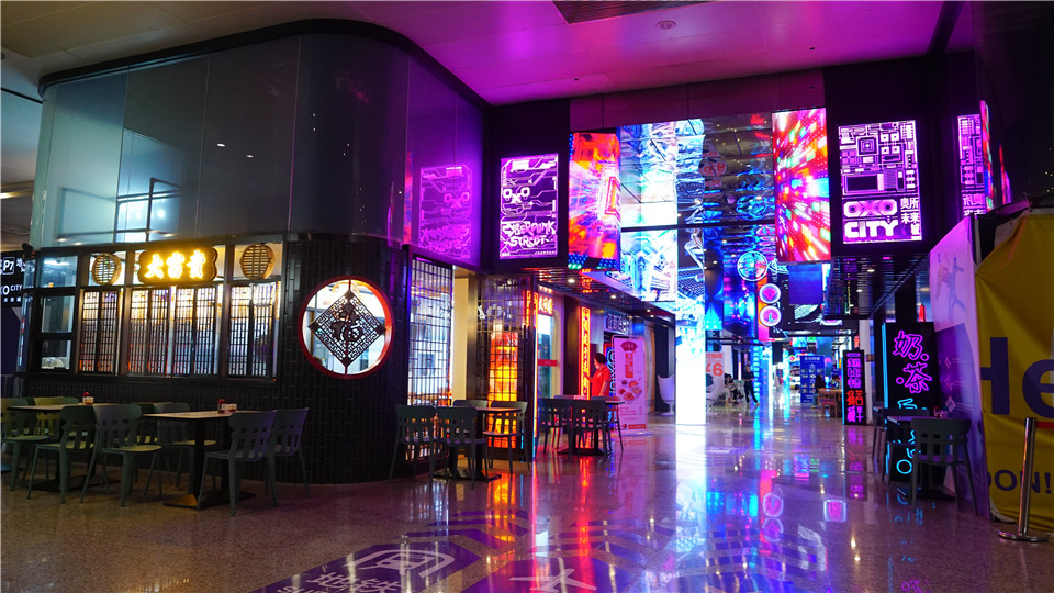 חברת ABSEN המובילה בהתקנות קירות מבוססי LED סיימה לאחרונה התקנת קירות וידאו על שטח בלתי נתפס של 1800 מ"ר, במעבר שבין שדה התעופה ל-OXO. התחושה שמקבלים המבקרים כבר ביציאה משדה התעופה, היא בלתי רגילה -עם מסך עצום בגודל 700 מ"ר המקדם את פניהם של המבקרים באזור המסחר ומוביל אותם לאולם רחב ידיים ובו למעלה מ-40 מסכי LED נוספים בתצורת 8 קוביות המציגות הדמיות תלת מימד יוצאות דופן בסגנון סייברפאנק.