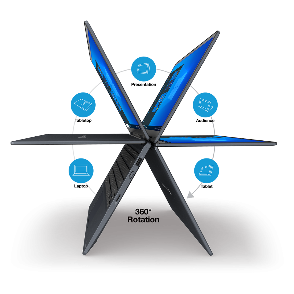 חיי הסוללה המרשימים של המחשב של עד 16 שעות¹ – מרמזים שאין צורך לחפש בדרכים שקעי חשמל. יש לו טעינה מהירה (עד- 40% מקיבולת הסוללה תוך 30 דקות) והוא כולל גם תכונת InstantOn – לקיצור משמעותי של זמן העלייה. ניתן ׳להעיר׳ את המכשיר באמצעות זיהוי פנים או טביעת אצבע. לטובת הספונטניים שבחבורה שרוצים לרשום בכתב ידם את חוויותיהם היומיומיות, מציע המחשב 5 מצבי תצורה, כשניתן גם להפכו לטאבלט. יחד עם תוכנת Windows Ink Workspace ועט AES אופציונלי, ניתן לכתוב על מסך הטאבלט, בכתב יד, רעיונות ותכנים אחרים.