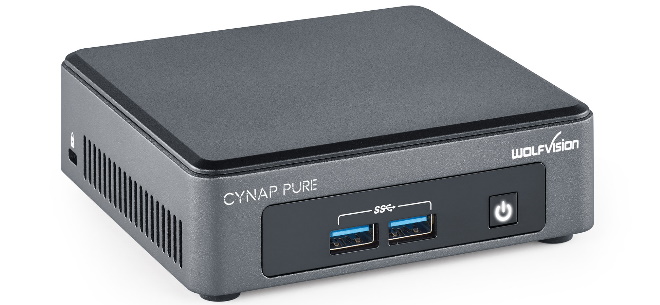 וולף-ויז'ון (WolfVision) הכריזה על ה Synap Pure Pro, תוספת חדשה לקו מוצרי התצוגה האלחוטית שלה. המערכת החדשה מביאה במארז קומפקטי שילוב יכולות של מערכות ה-Cynap הגדולות של החברה עם תפעול קל במיוחד ועם כלי שיתוף פופולריים שונים כדי לסייע לעבודה קבוצתית קלה יותר בחדרי ישיבות – שילוב של שיחות וידאו, פונקציות סימון והערות כמו בלוח חכם, נגן מדיה ועוד, תחת הממשק הקנייני של החברה, Cynap GUI.