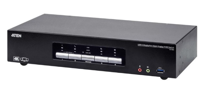 ATEN השיקה מתג KVMP חדש בשם CS1964 שמציע ארבעה חיבורי USB 3.0 יחד עם אפשרות לחבר שלוש תצוגות המבוססות על ממשק DisplayPort. המתג החדש כולל, בין השאר, גם את טכנולוגיית סנכרון הווידאו הקניינית של החברה, DynaSync, וכן מציע טכנולוגיית העברת נתונים מהירה בשם SuperSpeed. הנתונים יכולים לעבור בקצב של עד 5 גיגה-ביט/לשנייה על ידי שימוש ברכזת מובנית שמציעה שני חיבורי USB 3.1 Gen 1.