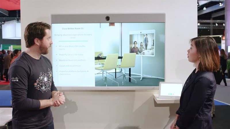 ה-Webex Board 55 הוא לוח אלקטרוני המאפשר להציג על גביו מידע ולאחר מכן לבצע עימו אינטראקציות באמצעות עט אלקטרונית או במגע יד. את התוצאה אפשר לשמור דרך האפליקציה ולאחר מכן לשלוח לענן ולהמשיך לעבוד עליה בקלות מחדר אחר.