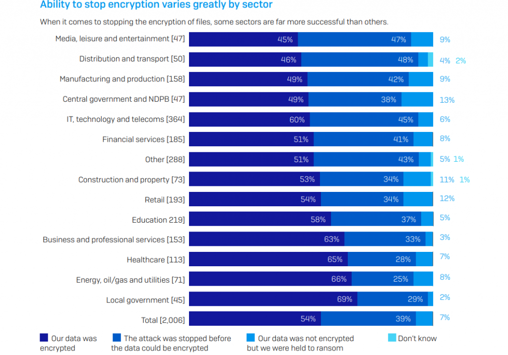 - מספר הארגונים ששילמו את דמי הכופר צמח מ-26% ב-2020 ל-32% ב-2021, על אף שפחות מארגון אחד מתוך 10 (8%) הצליח לאחזר את כל הנתונים שלו