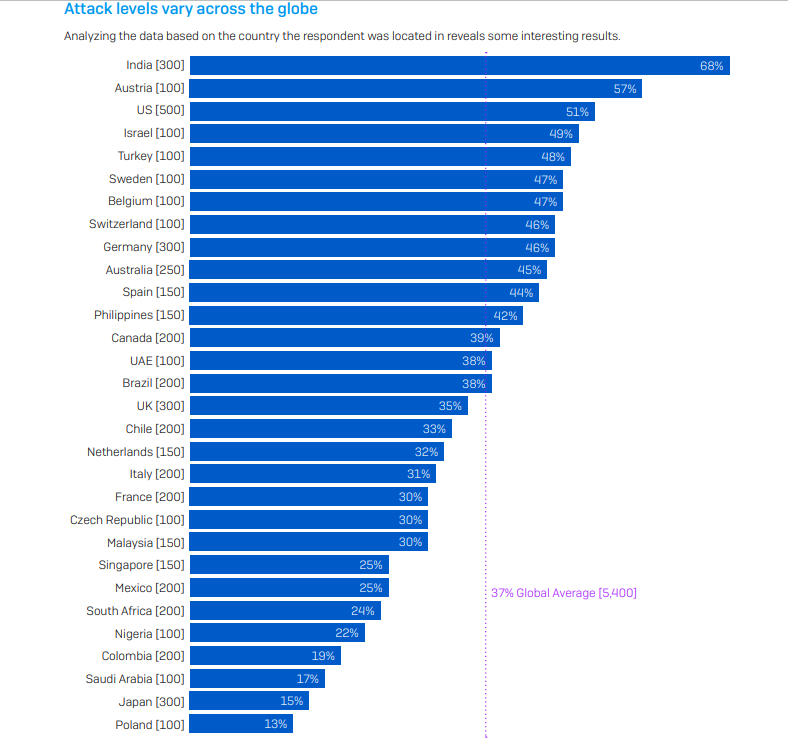 - 49% מהמשיבים בישראל חוו מתקפת כופר במהלך 12 החודשים האחרונים