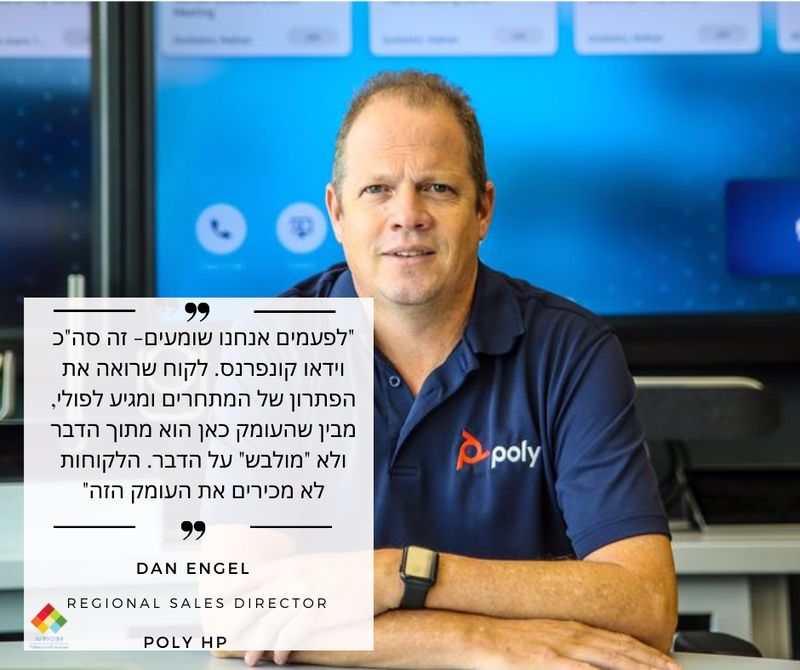"קיימות מגמות שונות אשר מביאות ל"השטחת" תהליך המכירה אבל אנחנו רואים את ההבדל בין הצטיידות "שטוחה" לבין כזו שכוללת hands-on עם ליווי pre-sale צמוד, המאפשרת ללקוח להשיג הרבה יותר. לקוח שקונה מ Poly HP פתרונות הוא לקוח שישתמש בצורה מקצועית יותר, יבין את היכולות השונות ויגדיל את את סט הכלים שלו בתחום הוידאו קונפרנס.