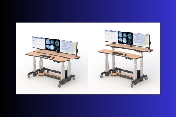 שולחן העבודה הכפול (או הרב מפלסי, Dual Tier) של AFC נועד לענות בדיוק על הצורך הזה. (כמובן שגם לצד מיקום באזורי העבודה בבתי החולים). השולחן העצמאי בנוי משני מפלסים שניתן לשנות את גובהם בקלילות באמצעות שני לוחות בקרה קטנים השולטים בארבעה מוטות טלסקופים נפרדים, שניים לכל מפלס.