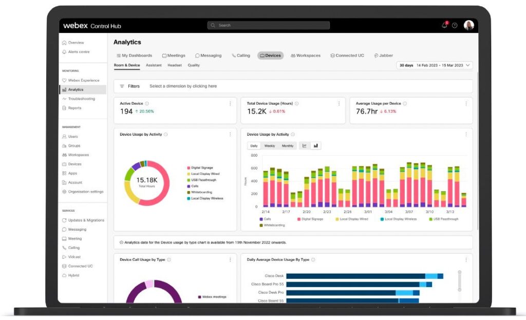 אחד האתגרים המרכזיים בניהול הארגוני של כל מה שנכנס תחת 'קולבורציה', שייך דווקא למגוון הסעיפים שהמונח הזה מרכז, ובדיוק בשביל זה הביאה סיסקו לעולם את ה Control Hub – ממשק ניהול ושליטה המאפשר למנהלי המערכת לקבל את כל המידע במקום אחד: