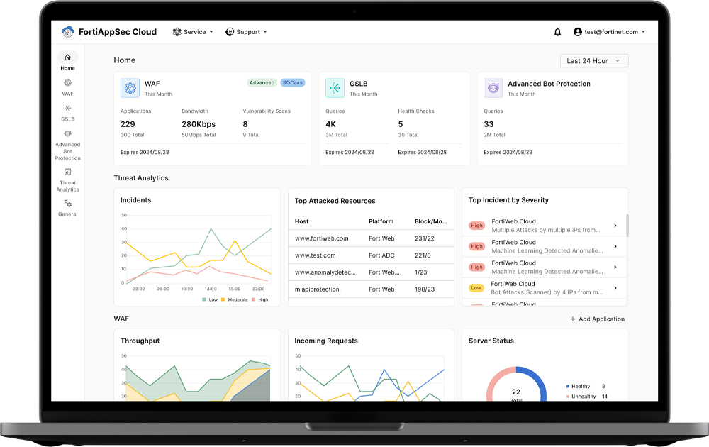 באמצעות FortiAppSec Cloud, לקוחות מקבלים נראות ובקרה מעמיקות לגבי יישומי הרשת בתוך סביבות מרובות הענן המורכבות שלהם. הפתרון מאפשר להם להגדיר ולנהל תכונות אבטחה וכלי ביצועים באמצעות ממשק קל לשימוש, מה שמייעל את תפעול היישומים, תוך הבטחת ההגנה על הרשת שלהם. התכונות המרכזיות של הפתרון כוללות: