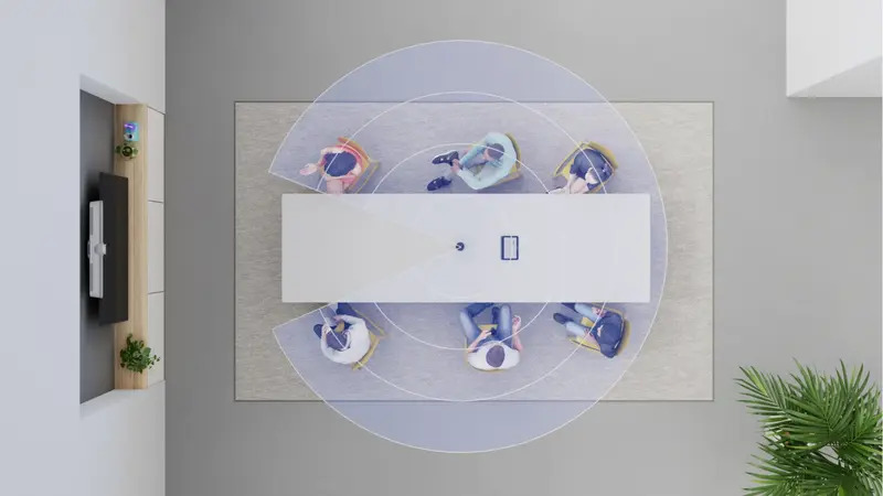 מבחינת טווח, המצלמה מסוגלת לתפוס את כל אחד מהמשתתפים שנמצא בטווח של 315 מעלות ולקלוט צליל ברדיוס של 2.3 מטר. טווח הרחבה זה מתאפשר באמצעות 7 מיקרופונים הממוקמים בחלק העליון של הגליל בתצורת Beam Forming ושתי מצלמות 4K הממוקמות בצדדים מנוגדים.