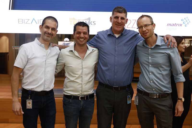 מימין: נתנאל עודד - מנהל יחידת פיתוח עסקי בבורסה לני"ע, אסף קבקוב – מנהל יחידת יישומים ארגוניים בבורסה, רועי דימניק - מנהל אגף דיגיטל וטכנולוגיות בחטיבת הפינטק והדיגיטל של מטריקס ואבי נאנוס – מנהל מדור בכיר דיגיטל בבורסת ת"א. צילום - קובי וולף