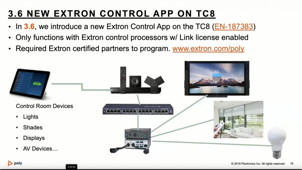גרסא 3.6 לעמדות הווידאו המצליחות של  POLY יצאה להורדה בסוף השבוע האחרון כאשר אחת התוספות הסופר מעניינות היא תמיכה מלאה בשליטה בציוד ההיקפי ובאביזרי חדר הישיבות, שיתוף פעולה בין Poly ל EXTRON.