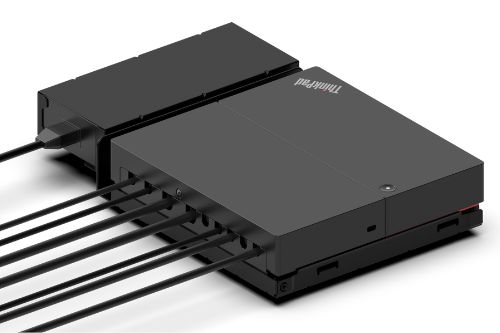 תחנת העגינה של ThinkSmart מצוידת במגוון גדול של יציאות, תפקודיות באפיון הדור הבא של הכנס והפעל, יכולות הטענה מהירה, ועוצמה שמספיקה להתקנת עדכוני קושחה קריטיים באופן ממוכן. תחנת העגינה של ThinkSmart מציעה בנוסף מערכת ניהול כבלים חדשנית שמרחיקה את כל הכבלים מהדרך וננעלת כדי למנוע ניתוק כבלים בטעות. זה מאפשר למשתתפים בפגישה לחבר במהירות את הניידים שלהם באמצעות כבל יחיד ומאורגן.