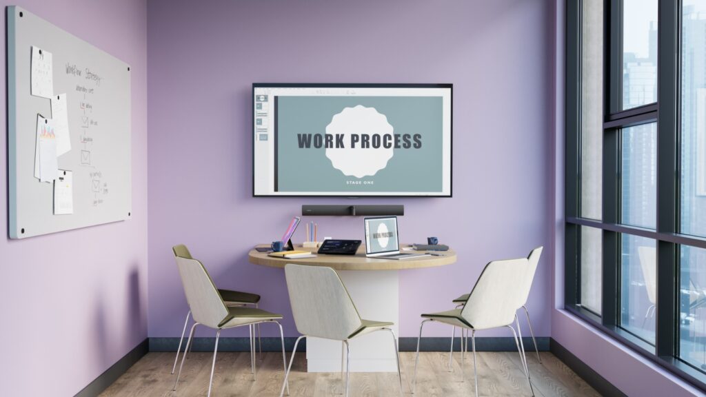 בנוסף מסך מגע בגודל 10.1 אינץ' לניהול חווית החדר והפעלה באופן מאובטח את Rooms Microsoft Team או Zoom Rooms . מסך המגע משחרר מחיבור המחשב הנייד והכבלים. ניתן להתחיל את הפגישה הבאה מהמסך עם נגיעה אחת בלבד לשיתוף פעולה מיידי ובצורה אלחוטית.